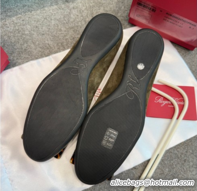 Good Quality Roger Vivier Trompette Ballerinas in Suede with Buckle Green 1030070