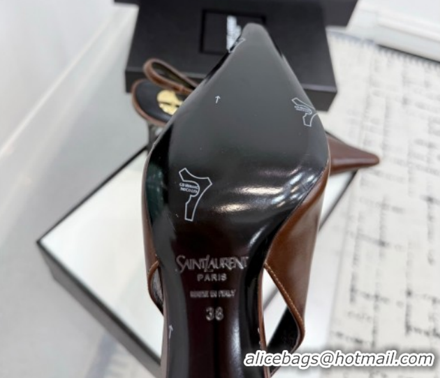 Grade Saint Laurent Babylone Breteuil Slingbacks Pump 9cm in Oil Leather Dark Brown 1213006