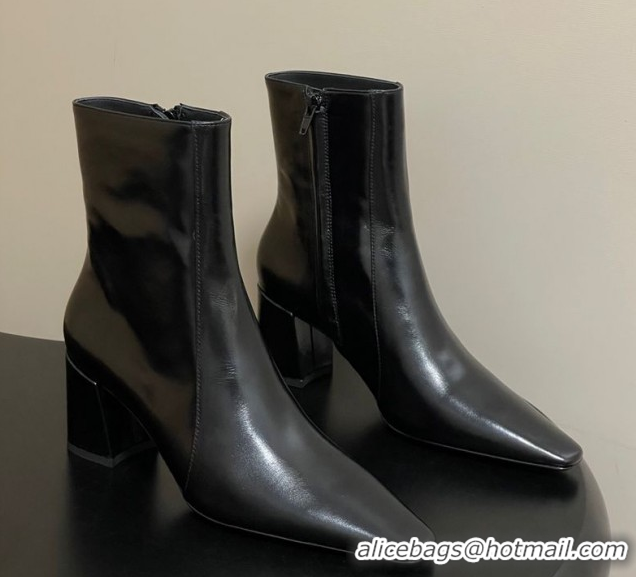 Good Product Saint Laurent Rainer Heel Ankle Boots 7.5cm in Shiny Leather Black 1028105