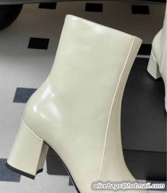 Grade Saint Laurent Rainer Heel Ankle Boots 7.5cm in Shiny Leather White 1028106