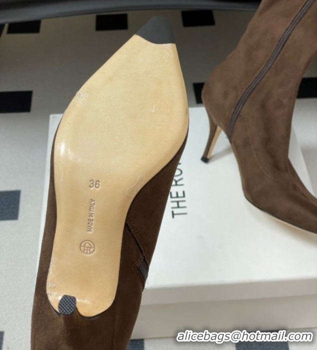 > Shoes Plaza > The Row Shoes > Big Discount The Row Liisa Kitten Ankle Boot 8.5cm in Suede Brown 1028055