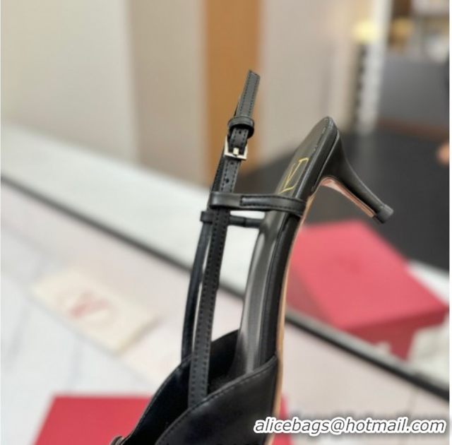 Grade Valentino VLogo Signature Slingback Pumps 4.5cm in Matte Calfskin All Black 2025 VA082110
