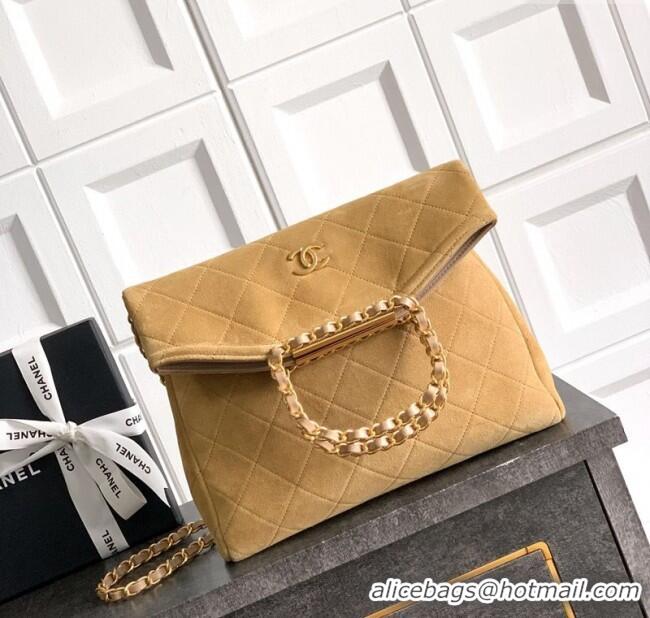 High Quality Chanel Quilted Suede Medium Flap Handbag CH101001 Khaki Yellow 2025