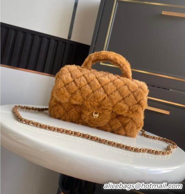 Promotional Chanel Rabbit Fur Mini Classic Handbag With Top Handle AS2431 Brown 2025