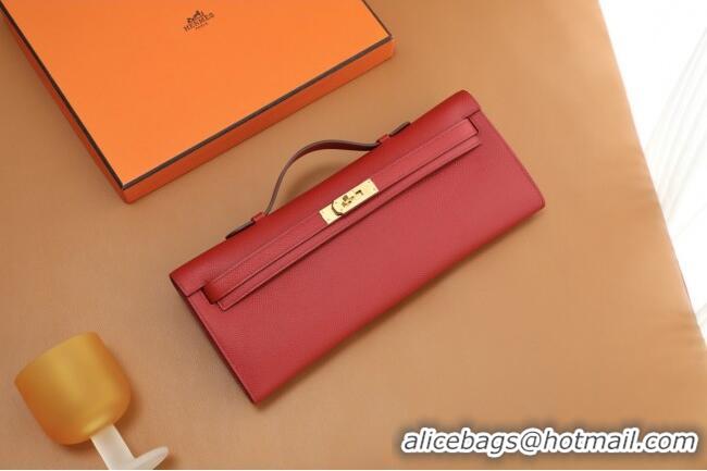 High Quality Hermes Kelly Cut Clutch Bag in Original Swift Leather H0307 National Flag Red/Gold (Full Handmade)