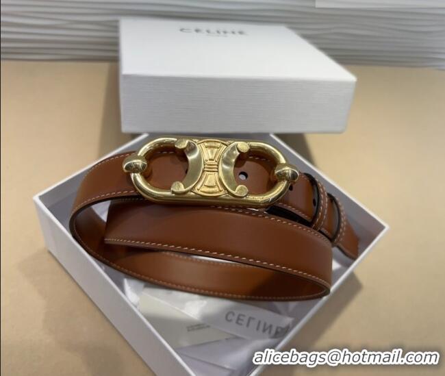 Inexpensive Celine Calfskin Belt 2.5cm with Metal-Tone Triomphe Buckle 0317 Brown 2025