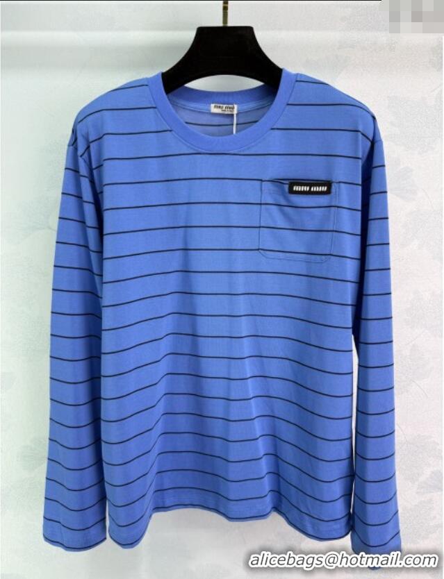 Hot Sell Cheap Miu Miu Striped Cotton Sweatshirt 0813 Blue 2025