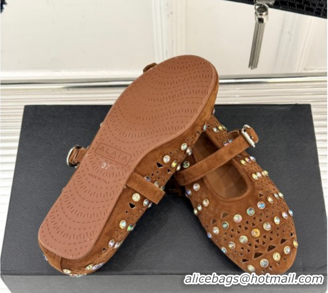 > Shoes Plaza > Alaia Shoes > Hot Style Alaia Ballet Flats in Openwork Suede with Eyelet with Strass Camel 2026 AL102910 1029145