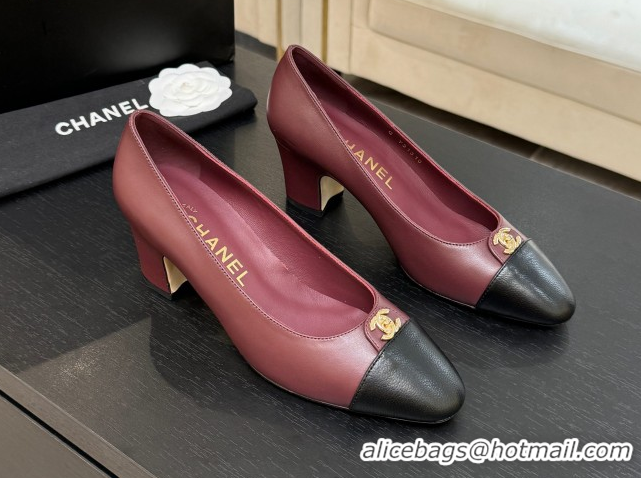 Best Product Chanel Lambskin Leather Pumps 6.5cm with CC Tag Burgundy 2025 G46441