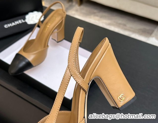 Low Cost Chanel Lambskin Leather Slingbacks Pump 9cm G45509 Beige/Black 2026