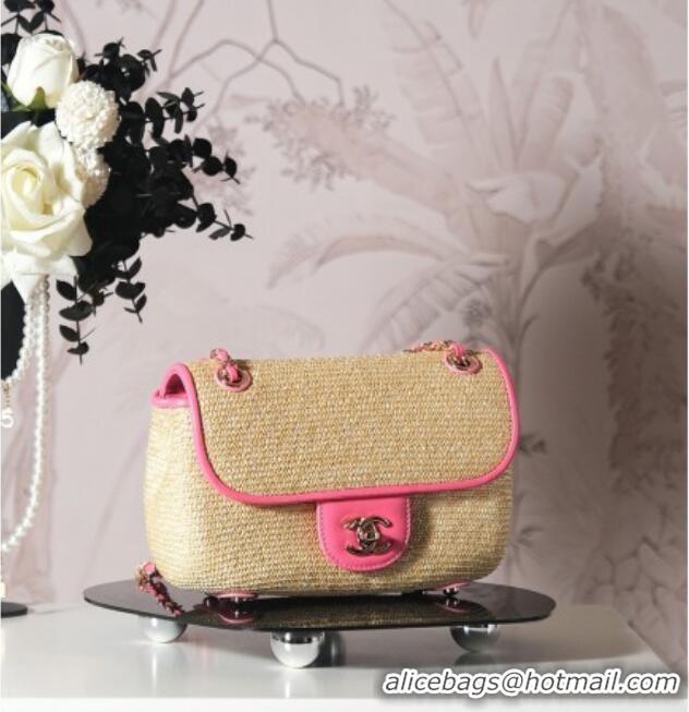 Cheap Price Chanel Raffia Straw and Calfskin Large Flap Bag AS5929 Beige/Pink 2025