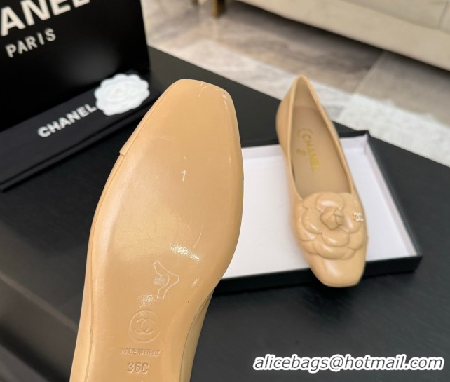 Hot Style Chanel Shiny Calfskin Ballet flats with Camellia Bloom Beige 2025 G46520