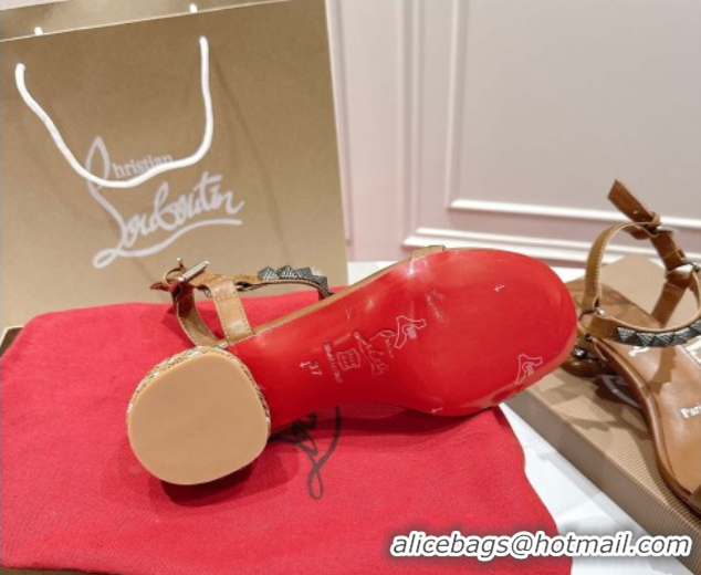 Hot Style Christian Louboutin Pyrasand Heel Sandals 5.5cm in Waxed Leather with Spike Studs Brown 1030128