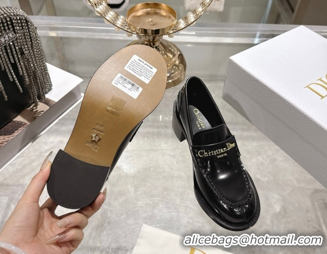 Duplicate Dior Boy Loafer Pumps 5cm in Brushed Calfskin Leather Black 1216090