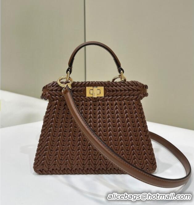 Original Cheap Fendi Peekaboo ISeeU Petite Bag in Interlaced Leather 80138S Caramel 2025 Top