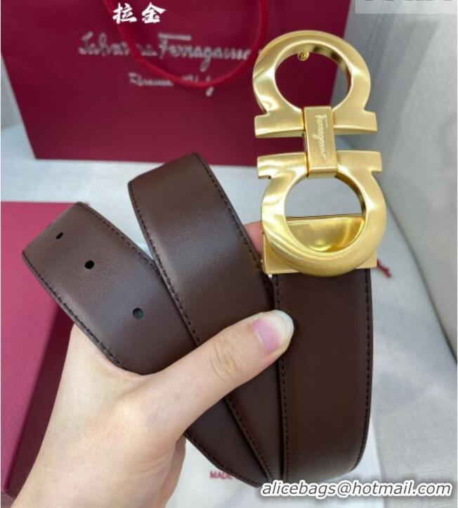 Good Product Ferragamo Belt 3.5cm in Reversible Soft Leather 0615 Black/Light Coffee/Brushed Gold