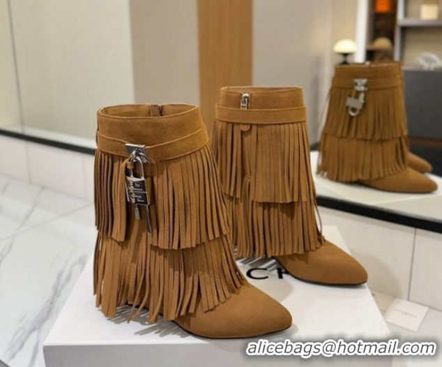 Hot Style Givenchy Shark Lock Tassel Wedge Ankle Boots 8.5cm in Suede 1210001 Light Brown 2026