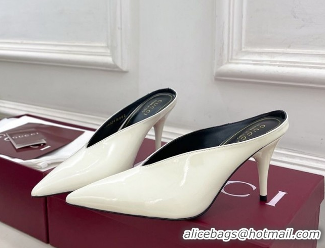 Your Position: Home > Shoes Plaza > Gucci Shoes > Hot Style Gucci 97 Heeled Mules 8.5cm in Patent Leather White 1021051