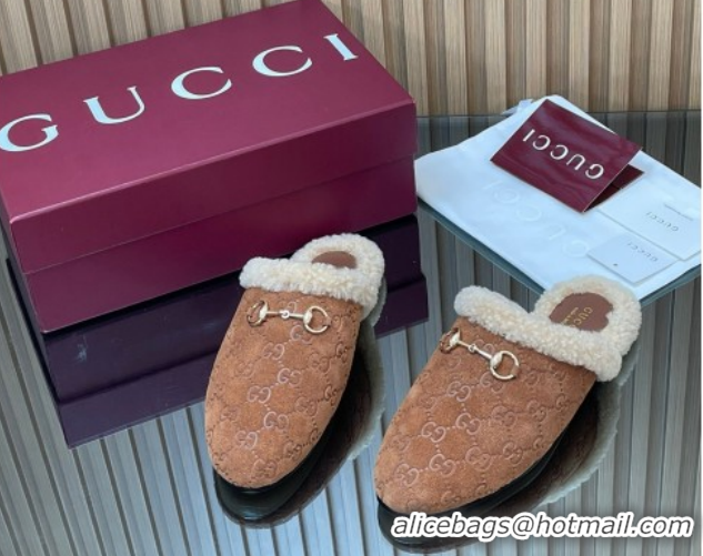 Hot Style Gucci Princetown Suede and Wool Flat Loafers with Horsebit GG121802 Light Brown 2026