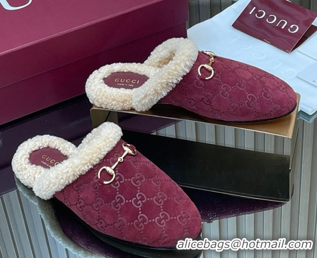 Good Looking Gucci Princetown Suede and Wool Flat Loafers with Horsebit GG121802 Burgundy 2026