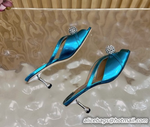 Charming Jimmy Choo Siva Heel Slides Sandal 6.5cm in Glazed Leather with Strass Blue2 2025 JC103102