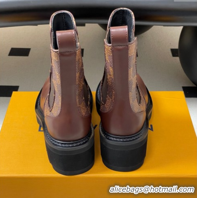 Perfect Louis Vuitton LV Beaubourg Chelsea Ankle Boots in Damier Canvas and Leather Brown 1AIEJ4 1022059