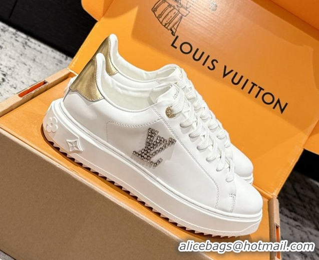 Hot Style Louis Vuitton Time Out Sneakers in Leather with Strass LV White/Gold 1022101
