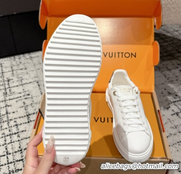 Top Design Louis Vuitton Time Out Sneakers in White Leather with Grey Label Hanging 1AGUXO 0829009