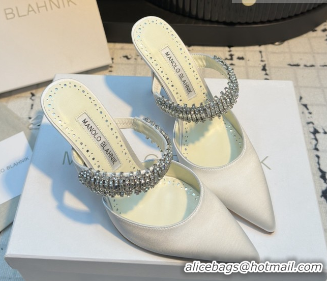 Hot Style Manolo Blahnik Lutara 90 Satin Mules Strass Embellished White 112502