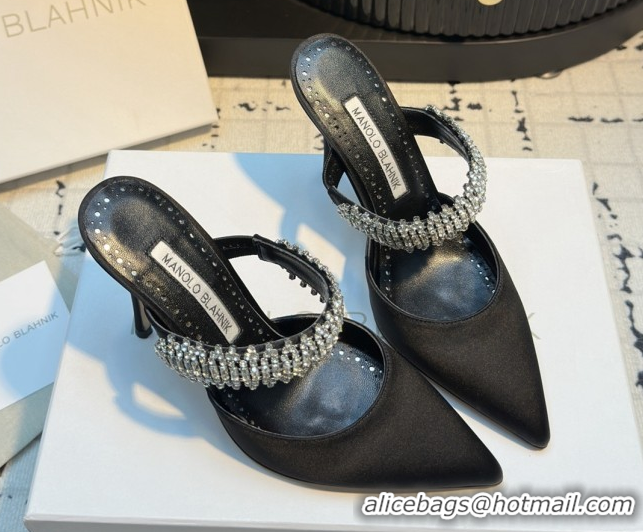 Good Product Manolo Blahnik Lutara 90 Satin Mules Strass Embellished 112502 Black 2026