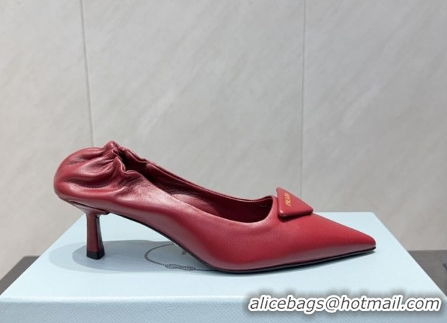 Hot Style Prada Leather Elastic Heel Pumps 5.5cm Red PR120502 1205027 2026