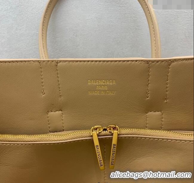 Promotional Balenciaga Bel Air Small Carry All Bag in smooth calfskin 48089 latte beige aged-gold hardware 2025