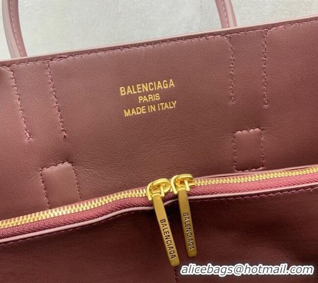 Inexpensive Balenciaga Bel Air Small Carry All Bag in smooth calfskin 48089 dark burgundy aged-gold hardware 2025
