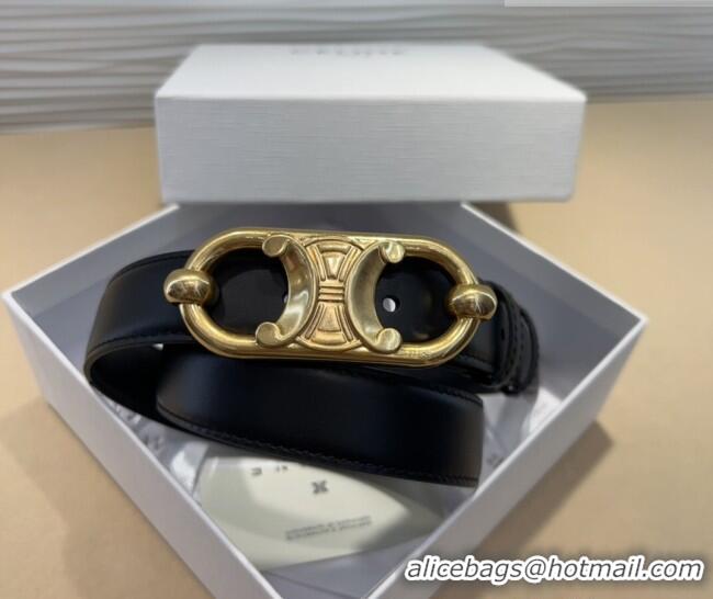 > Belts Mall > Celine Belts > Traditional Discount Celine Calfskin Belt 2.5cm with Metal-Tone Triomphe Buckle 0317 Black 2025
