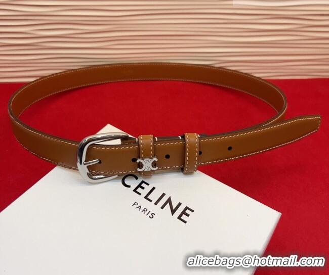 Inexpensive Celine Elegant Charm Triomphe Belt 2.5cm with Silver-Tone Pin Buckle in Shiny Leather 16052 Tan Brown 2026