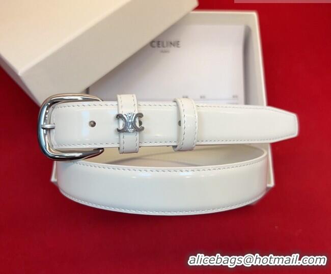 Your Position: Home > Belts Mall > Celine Belts > Low Cost Celine Elegant Charm Triomphe Belt 2.5cm with Silver-Tone Pin Buckle in Shiny Leather 16052 White 2026