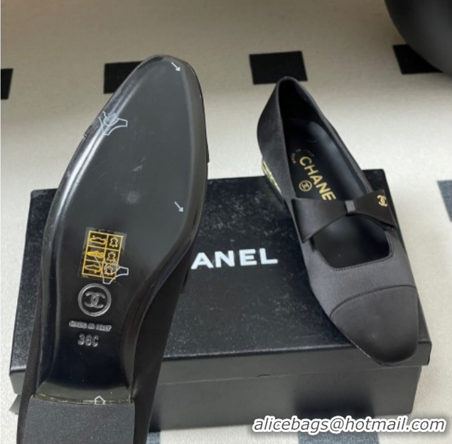 Hot Style Chanel Satin Ballet Flats with Bow CH122403 Black 2026