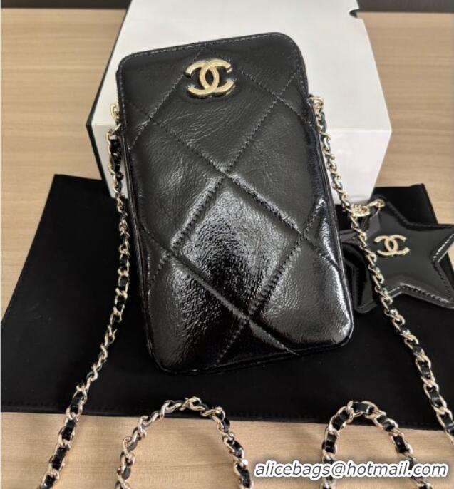 Inexpensive Chanel Shiny Crumpled Calfskin Phone Holder with Chain AP4777 Black 2025
