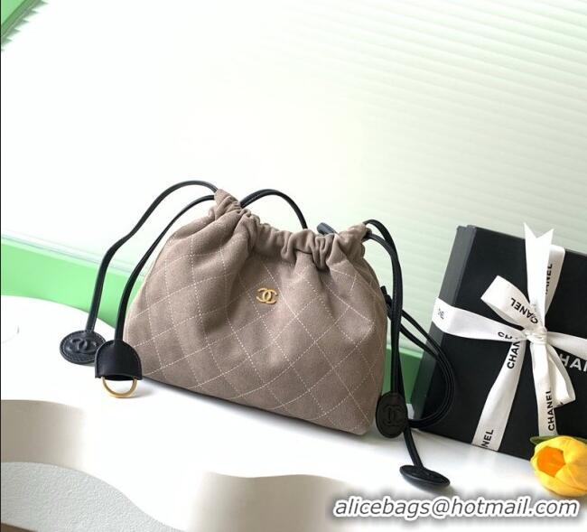 Top Quality Chanel Suede Clutch with Leather Strap AP5227 Grey 2026