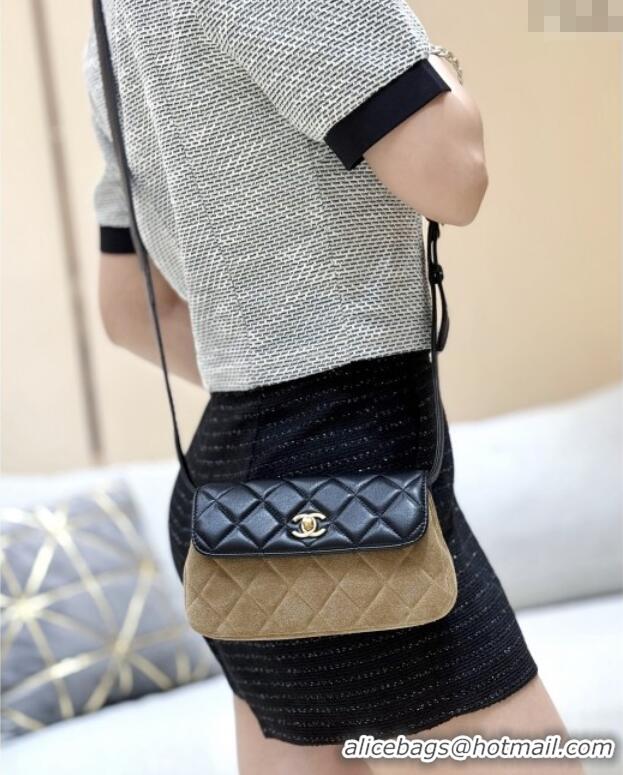 Your Position: Home > Chanel Handbag > Chanel 2025 Bags > Inexpensive Chanel Suede & Lambskin Phone Holder with Strap AP4677 Beige/Black 2025 Top Quality