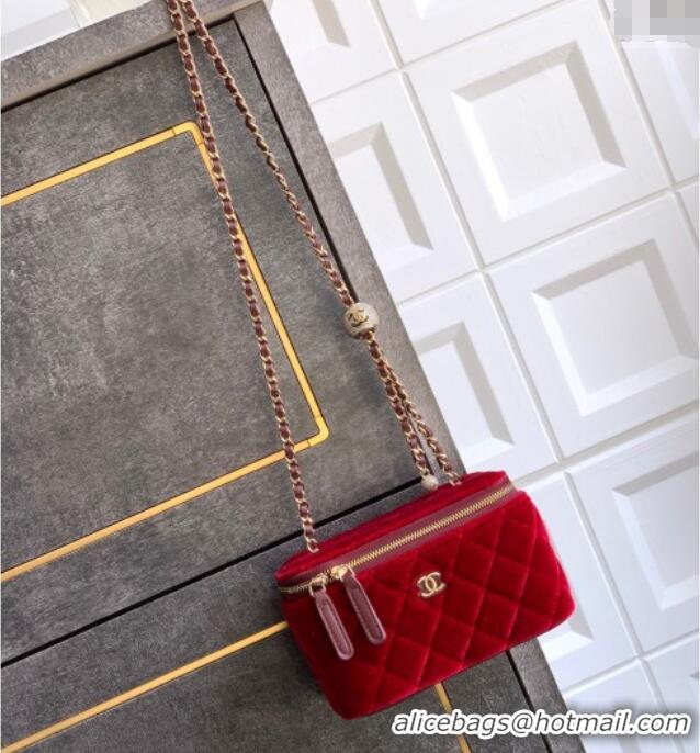 Inexpensive Chanel Velvet Vanity Case with Chain and Strass Ball CH101007 Red 2025