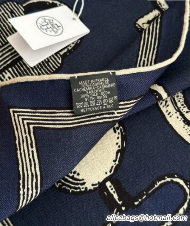 Inexpensive Hermes Inventaire Poetique Pour un Conte Sellier Shawl Scarf 140x140cm H1514 Blue/Black/White 2026