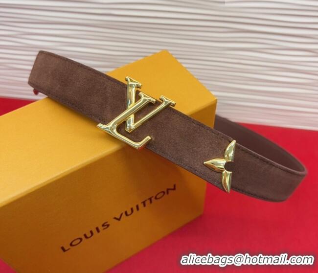 Original Cheap Louis Vuitton Pretty LV Belt 3cm in Suede and Leather M8232 Brown/Gold 2026
