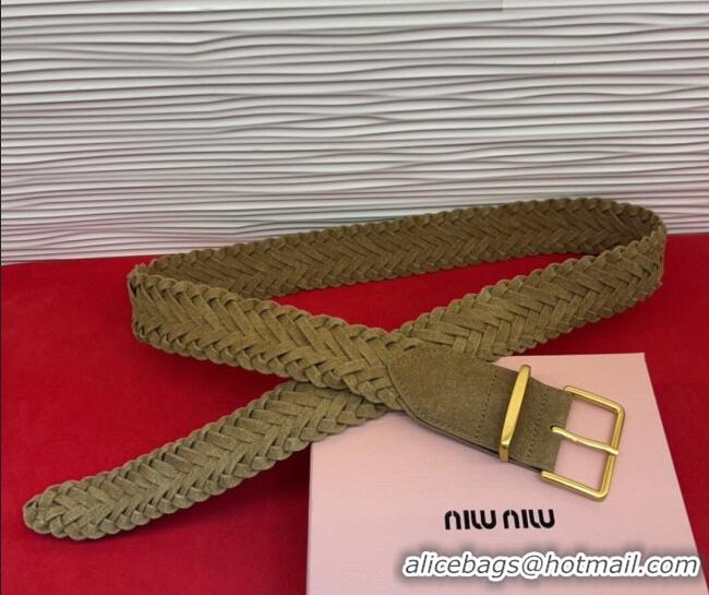 Inexpensive Miu Miu Woven Suede Belt 4.5cm with Pin Buckle MM031701 Green 2026
