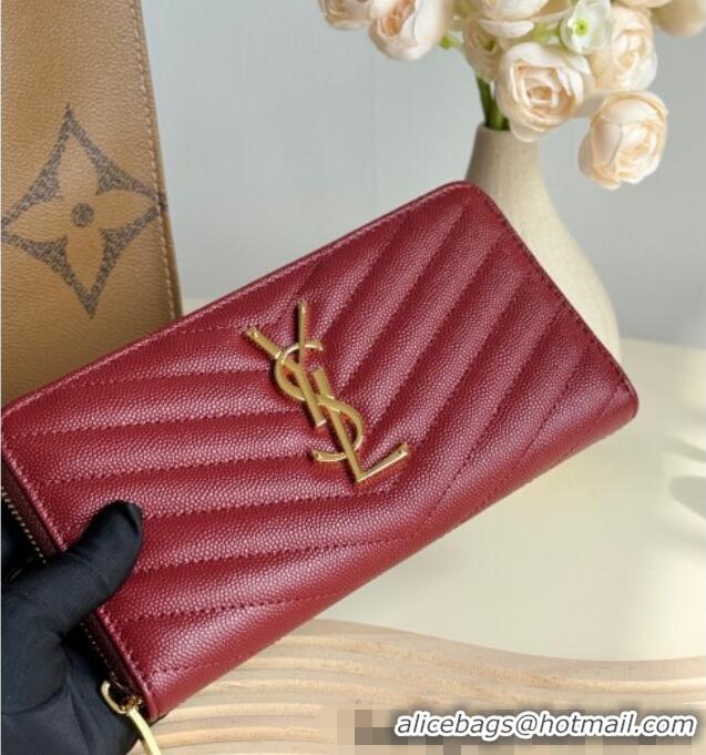 Super Quality Saint Laurent Cassandre Matelasse Zip Around Wallet in Grained Leather 358094 Burgundy 2025