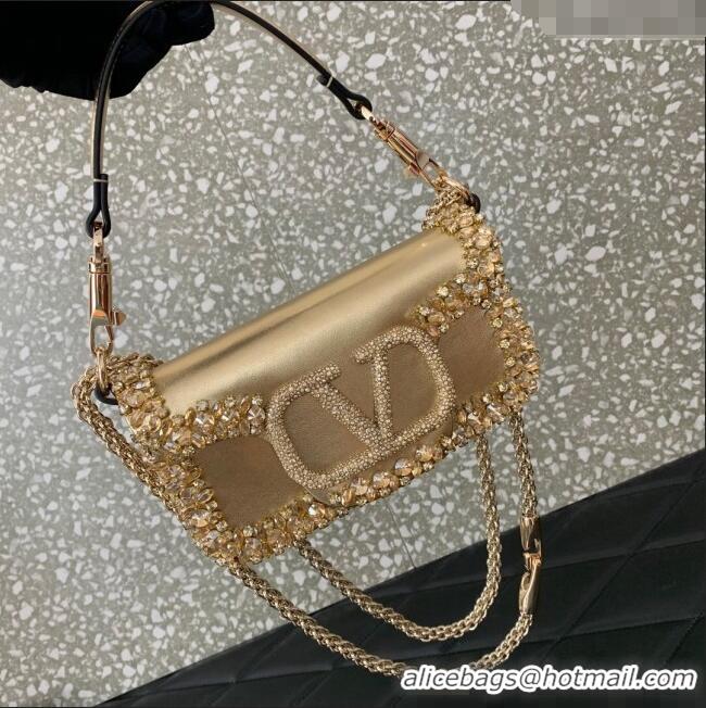 Best Product Valentino Loco Small Shoulder Bag with Embroidered Trim 6036 Gold 2024
