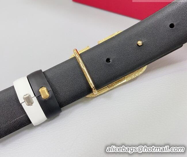 Inexpensive Valentino VLogo Calfskin Leather Belt 3cm with Strass Buckle 0108 White/Black 2025
