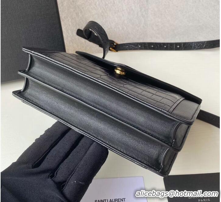 Inexpensive Yves Saint Laurent GABY MINI SATCHEL CROCODILE-EMBOSSED SHINY LEATHER Y568890 black