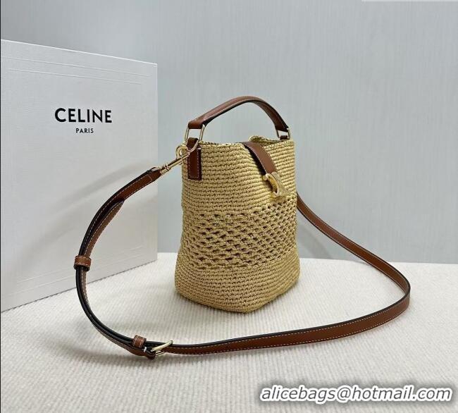 > Celine Handbags > Celine 2025 Bag > Latest Style Celine Small Louise Bucket bag in Raffia Straw and Calfskin 119742 Beige 2025