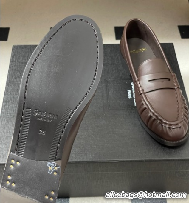 Sumptuous Saint Laurent Le Loafers Penny Slippers in Calf Leather Dark Brown 1215005